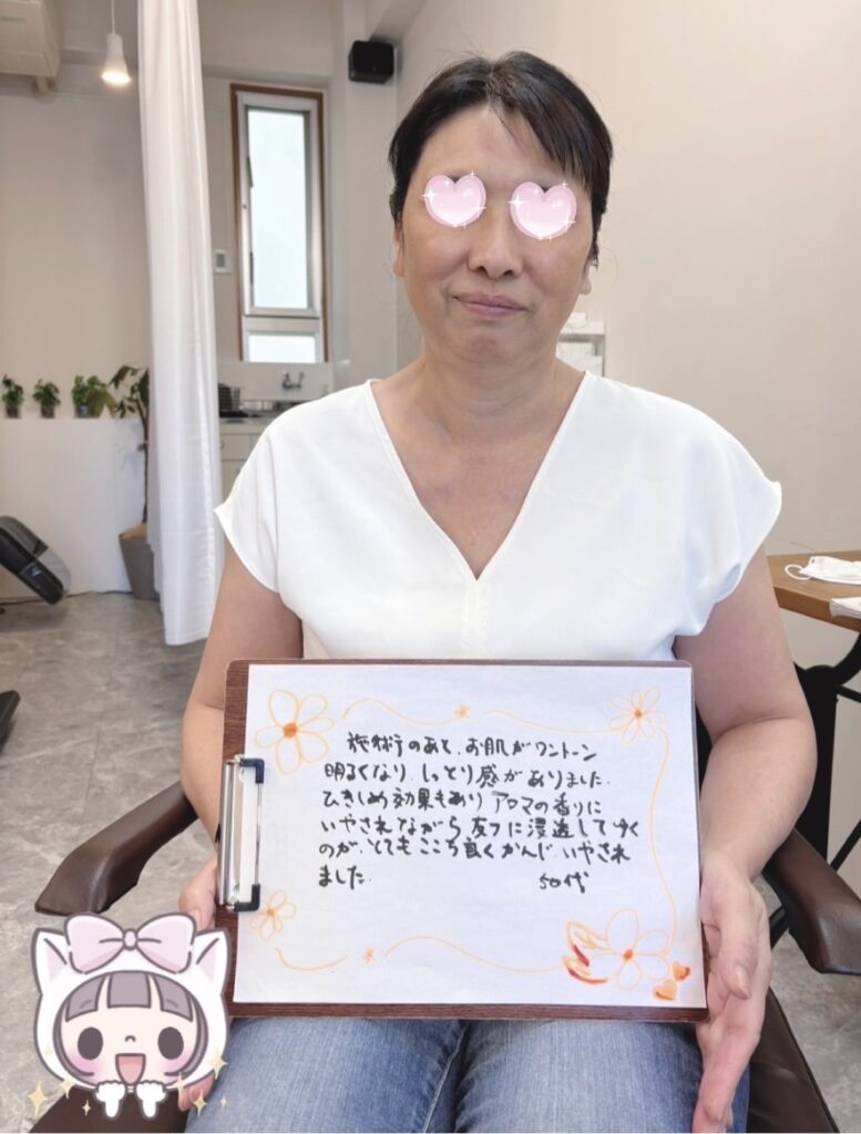フェイスラインもすっきりして、まるでひと晩ぐっすり眠ったようなツヤと透明感が出ました。